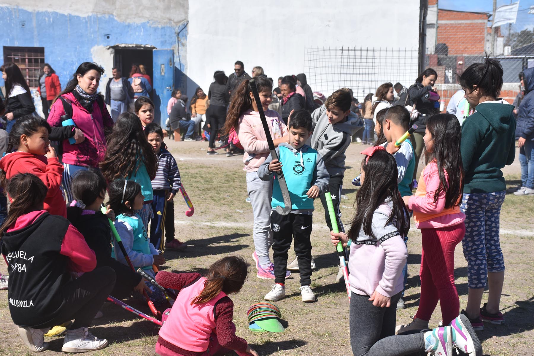 La jornada contó con la presencia de la ex leona Jorgelina Bertoni, quien realizó una clínica de hochey para los chicos y chicas que asistieron a festejar el día del niño con la Defensoría. En el transcurso de la actividad deportiva también se entregaron los palos que fueron donados para el plantel del club.