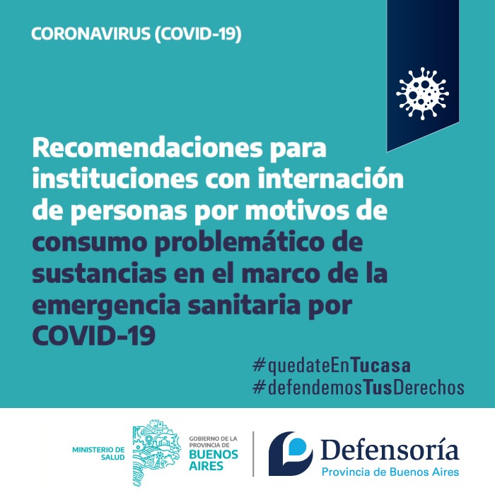Recomendaciones de la Subsecretaría de Salud Mental, Consumos Problemáticos y Violencias para el trabajo en comunidades terapéuticas o dispositivos de la Provincia en el marco de la emergencia sanitaria por Covid-19